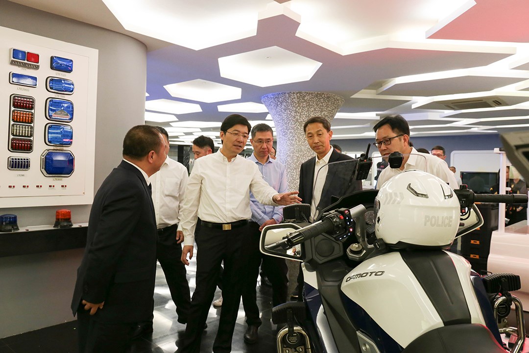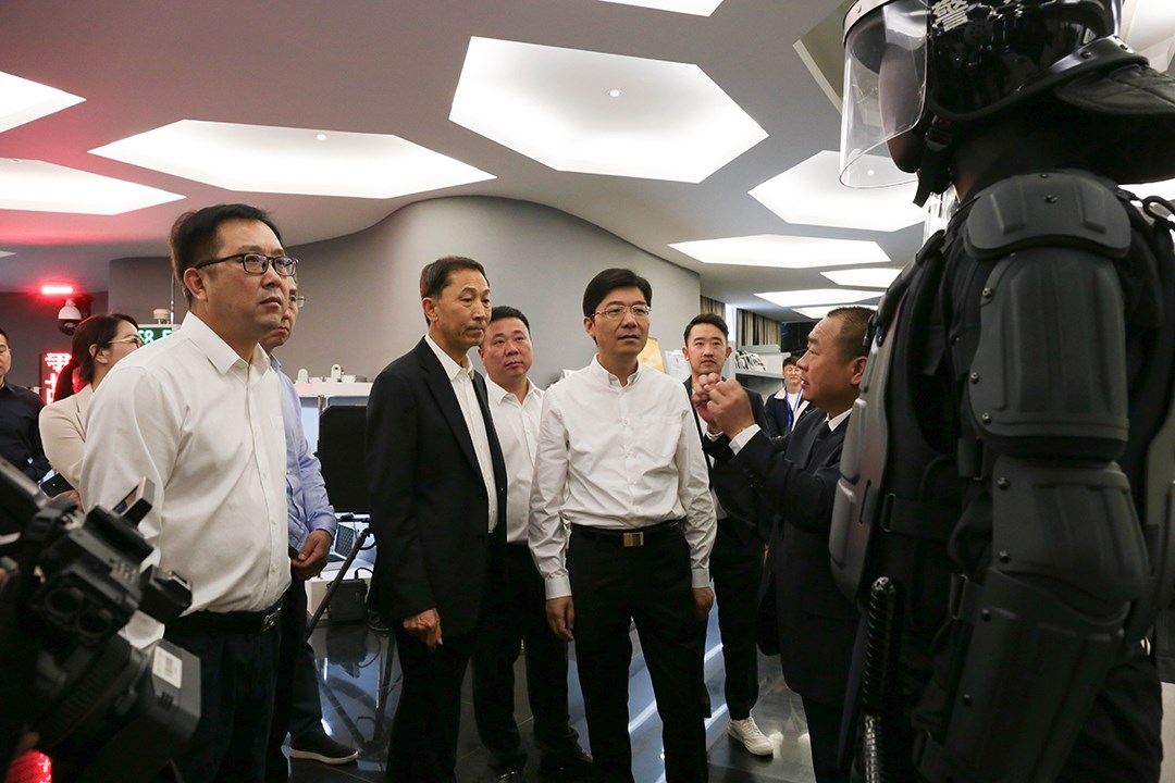 领导一行首先参观了企业展示厅,金铭勇总裁代表企业详细介绍了企业发展历程、产品和市场情况,着重说明了企业的创新成果和未来发展方向。姚市长饶有兴趣参观了企业的各类产品,不时询问了解,对企业走信息化和智能化为引领的创新发展路线,以及军警一体、海内外并举的市场战略和品牌战略表示认可,也对企业促进行业进步,为国家安防事业做贡献的责任和使命担当表示赞赏。