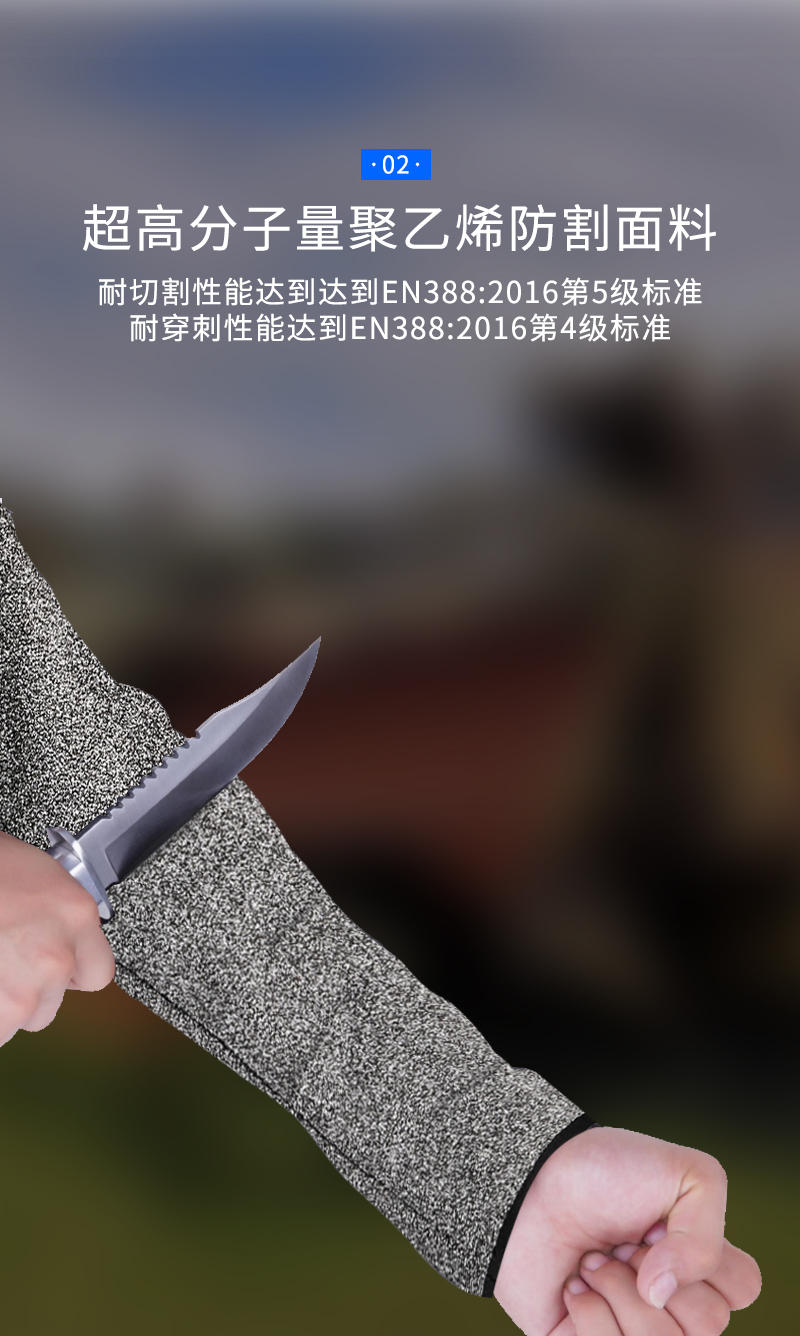 防割护长臂采用防割纤维材料制成,穿戴柔软舒适,轻便干爽。同时,具有防刀、防玻璃等锋利物的功能,兼具防咬功能,可降低人类牙齿啃咬并穿透他人皮肤的风险,借以杜绝咬伤所造成的疾病传染与交叉感染的风险。使用行业广泛,适用于公、检、司、法、私人保镖以及移民官员等人群安全防护。