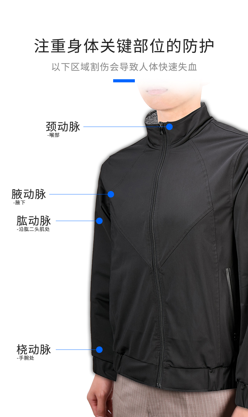 防割衣外套采用高密消光春亚纺,穿着舒适,轻薄透气,且隐蔽性强。内里采用防割纤维材料制成,具有耐磨、耐咬、抗撕裂的优势,能够有效防护身体关键部位,广泛适用于公、检、司、法等执法人群。