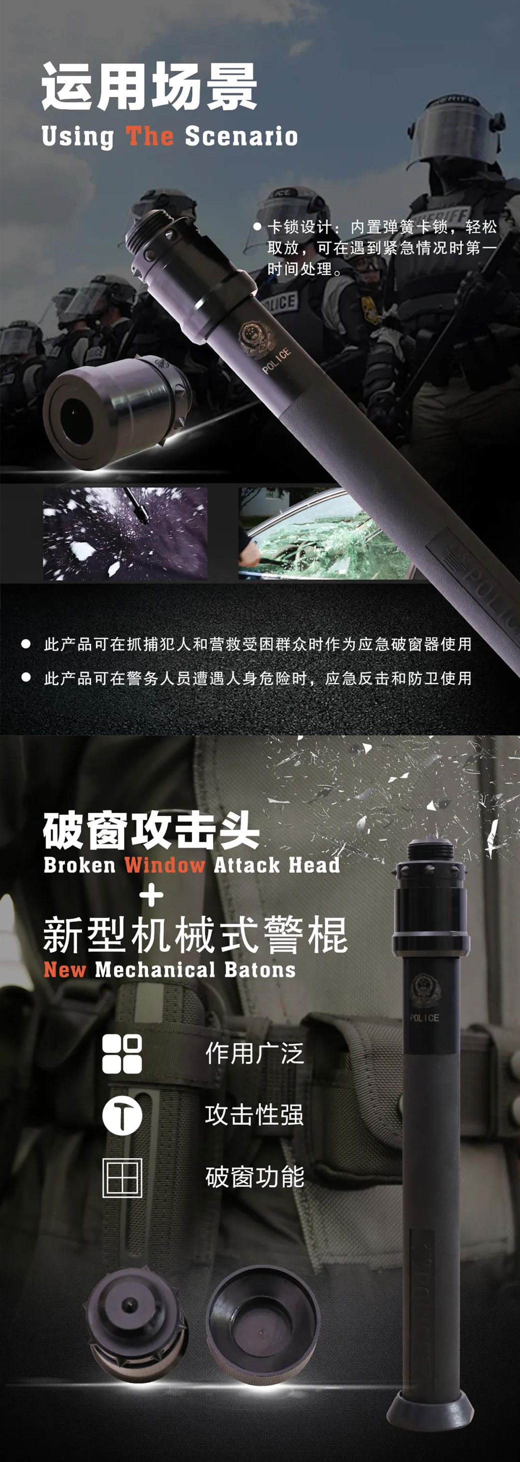 破窗攻击头是我司新研发的一款搭配新型机械式警棍的破窗攻击配套产品,其作用广泛,攻击性强,具有威慑性及破窗功能,在保证足够击打强度的前提下,可轻松击碎不同厚度的钢化玻璃。