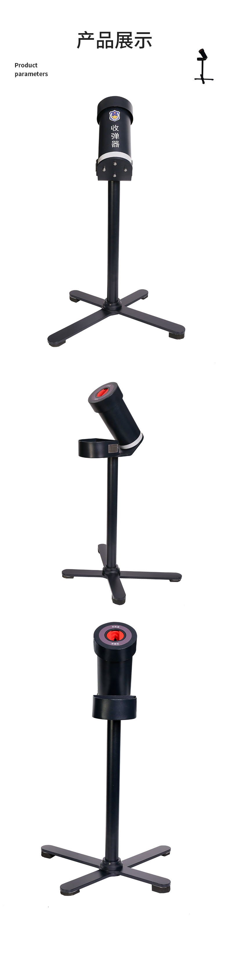 由筒体、支架、吸能缓冲材料组成,支架底板上有固定支撑;支架上部有弹壳,使用时调节放置弹壳,筒壁上部端口位置有排气孔。 收弹器可广泛用于银行押运、公安反恐防暴、法院押解、执勤处突等各种使用枪支的应用场合,可与枪弹柜配合使用。
