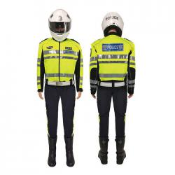 夹克款式设计,下摆收紧,同时配备宽腰鼻,使其更加保暖适合穿警用执勤腰带;采用进口面料,耐磨性优秀,保护机动车驾驶人员不受擦伤。