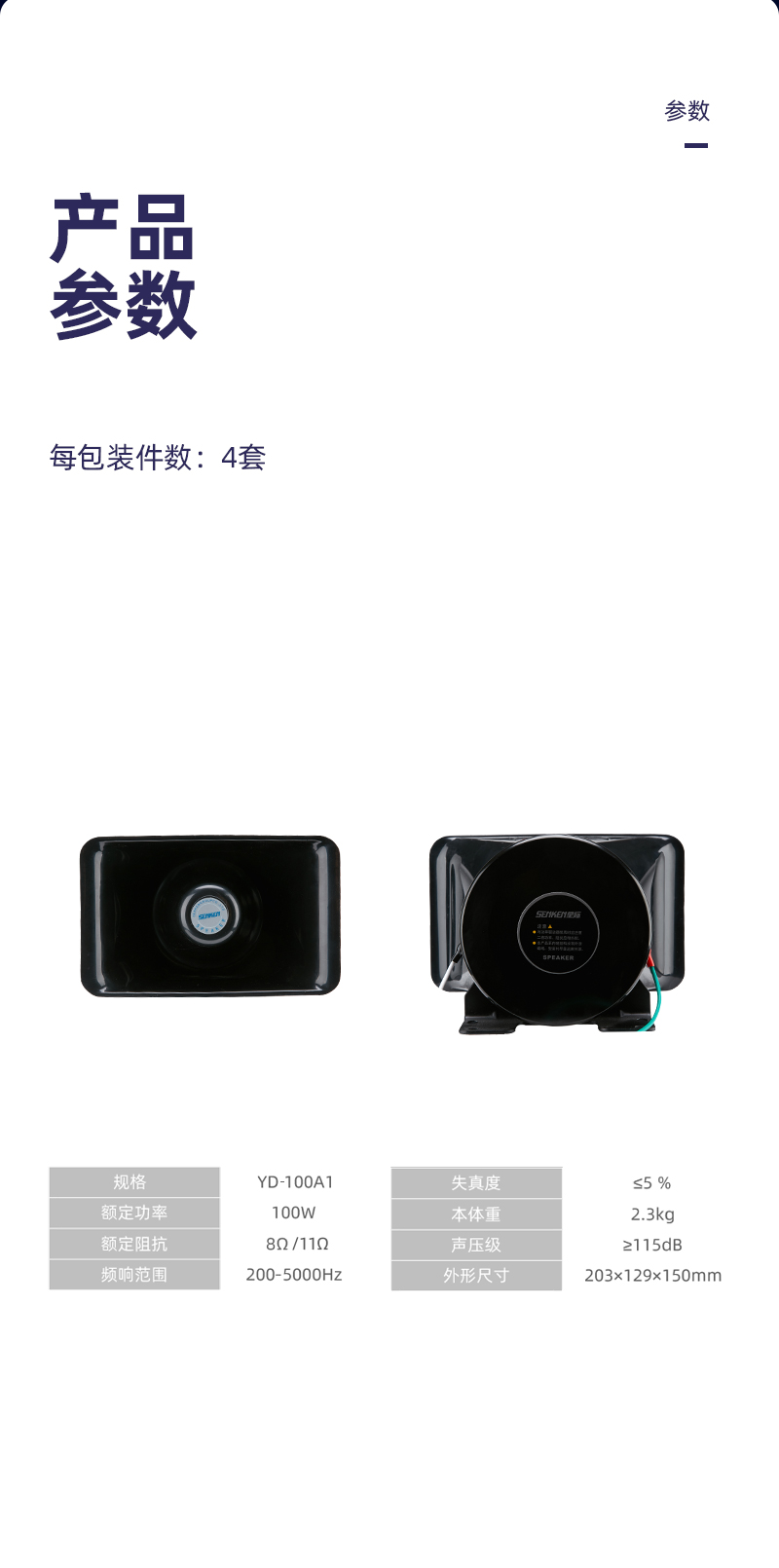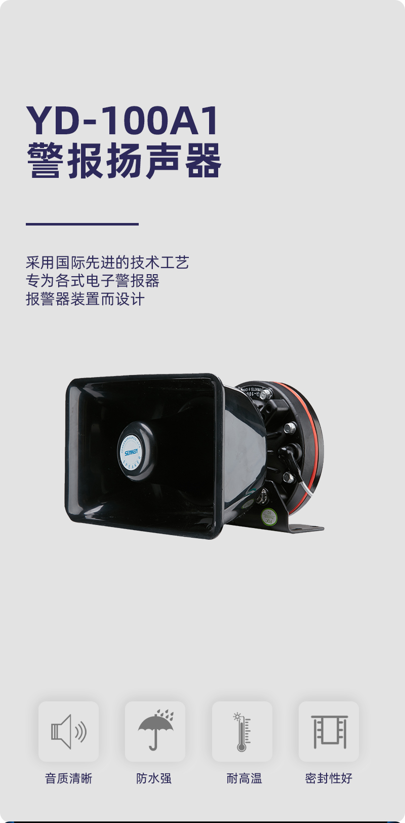 YD-100A1扬声器是本公司采用国际先进的技术工艺,专为各式电子警报器、报警器装置而设计。它采用了耐高温的稀土合金磁钢、膜片等特制零件组成的内磁式扬声器。