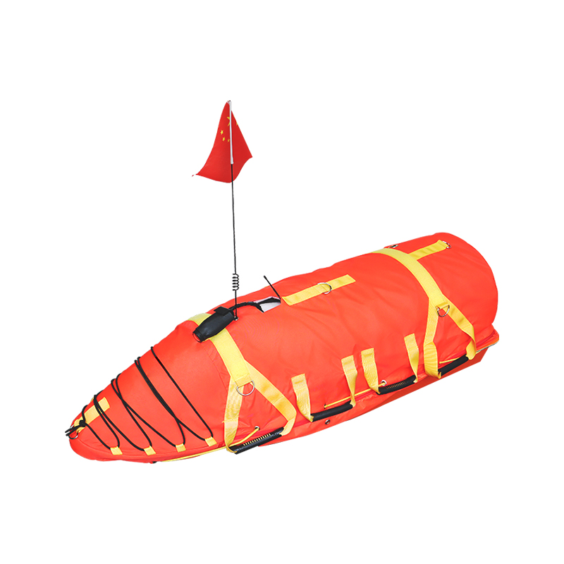 2.结构: 采用上下结构,船体配有8个把手及四周具有一圈快速抓绳。可同时救起 8名落水者,配有浮力拉绳,带有夜间频闪灯、机身旗杆一根。