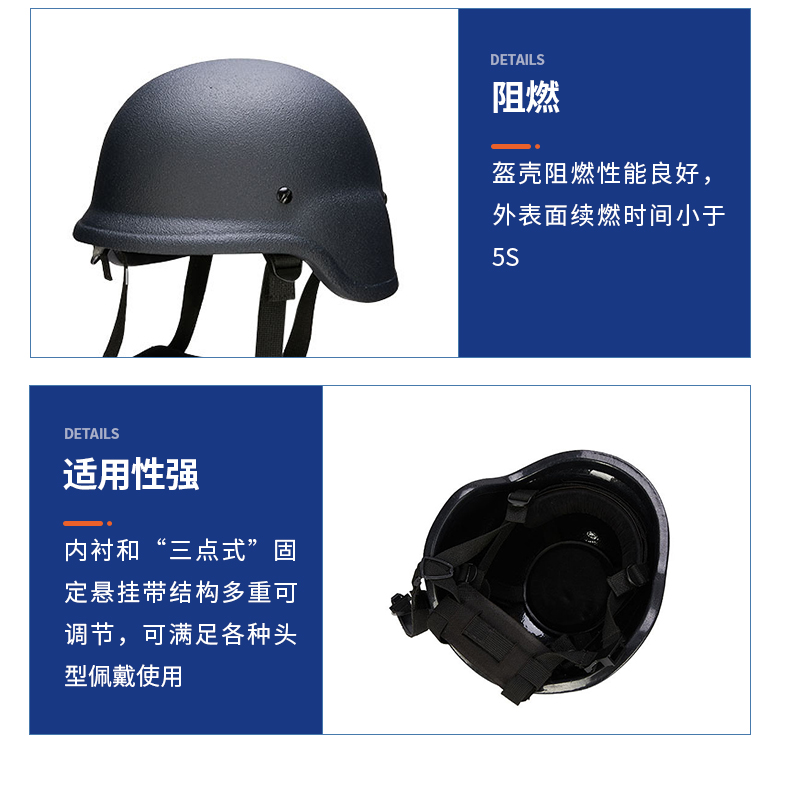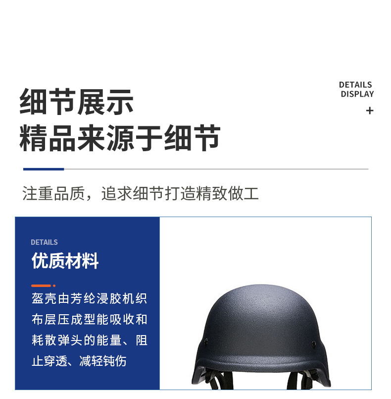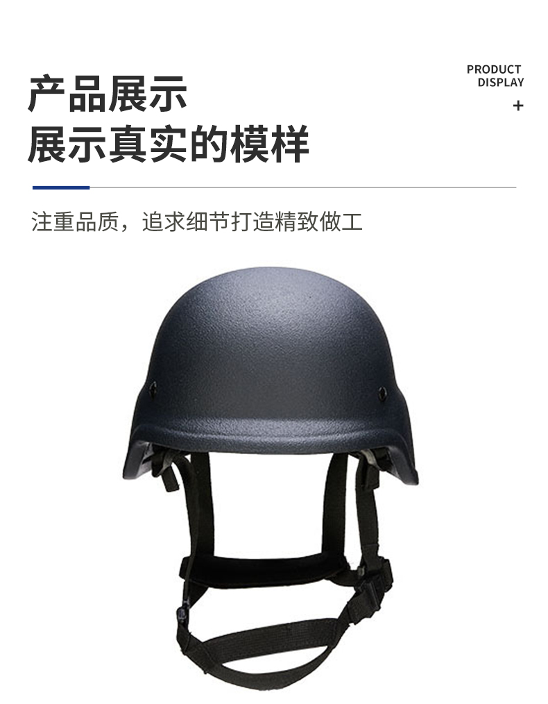 防弹头盔由壳体、缓冲层、佩戴装置组成,壳体由芳纶浸胶机织布层压成型,具备阻燃、舒适等优势,防护等级可达III级,能够有效保护穿戴者安全,广泛适用于巡逻、演练、出勤、防暴等特殊场景。