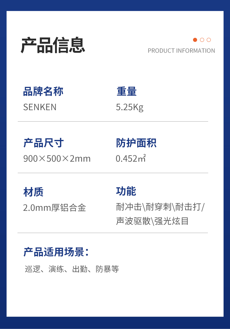 > SQD-150-01-S警用声光驱散盾牌