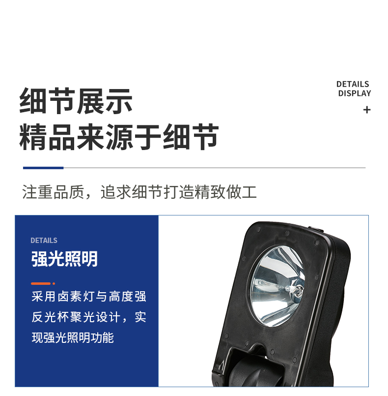 YTLVI05-70搜索灯采用优化设计,以卤素灯为光源,并结合高亮强反光聚光设计,发光更高效,广泛用于公安巡逻、消防指挥、电力抢修、企事业单位警卫、夜间突发事故搜索、抗洪抢险等照明使用。