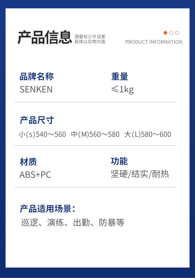 QWK-02勤务盔是一种用于防止头部及面部受到打击或其他潜在的伤害性攻击的警用装具。本头盔采用高强度ABS和PC材料制造,头盔由壳体、缓冲层、佩戴装置等组成,具有线条流畅,视野宽阔,透光率好,佩戴牢靠、舒适、解脱方便等特点,符合《GA296-2001警用勤务头盔》标准的规定。是警务人员在日常执勤巡逻中保障自身的必备防护装备。
