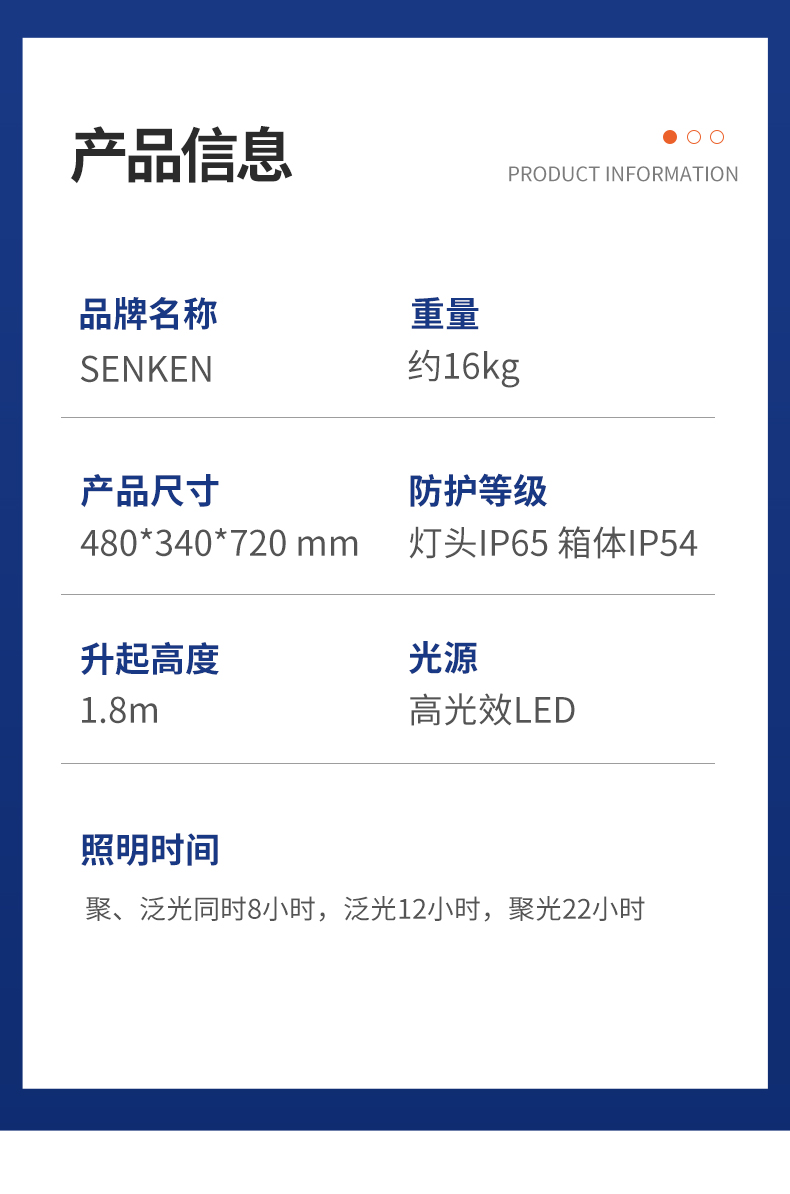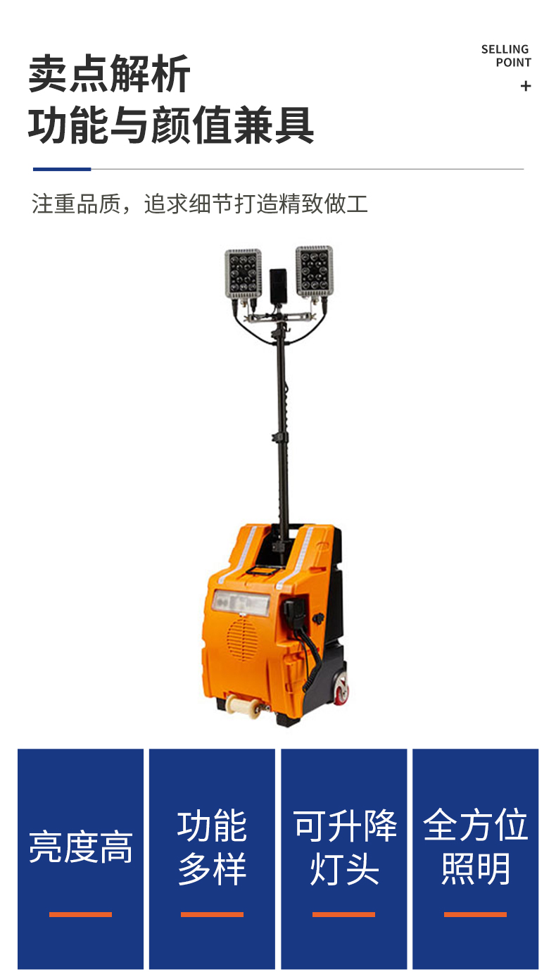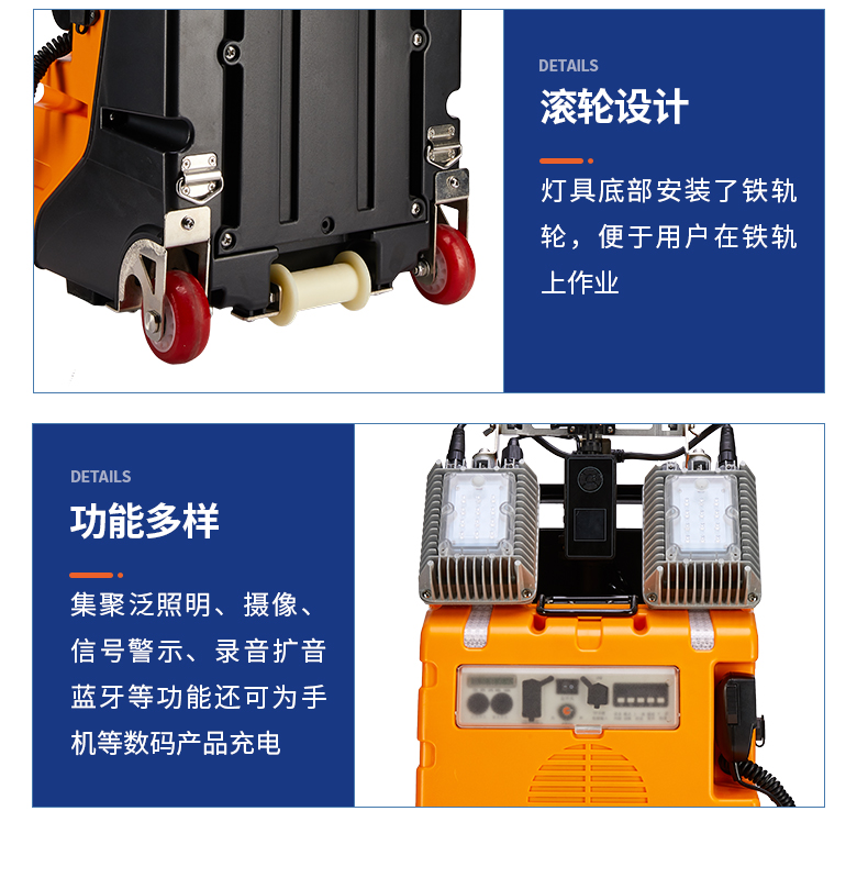 特种移动照明灯功能强大,拥有照明、录像、信号警示、录音、扩音、播放音频等功能。最高可调节至1.8米的伸缩杆与360旋转灯头赋予了此照明灯强大的环境适应性。良好的设计以及严选材料使得该款产品拥有便携性。